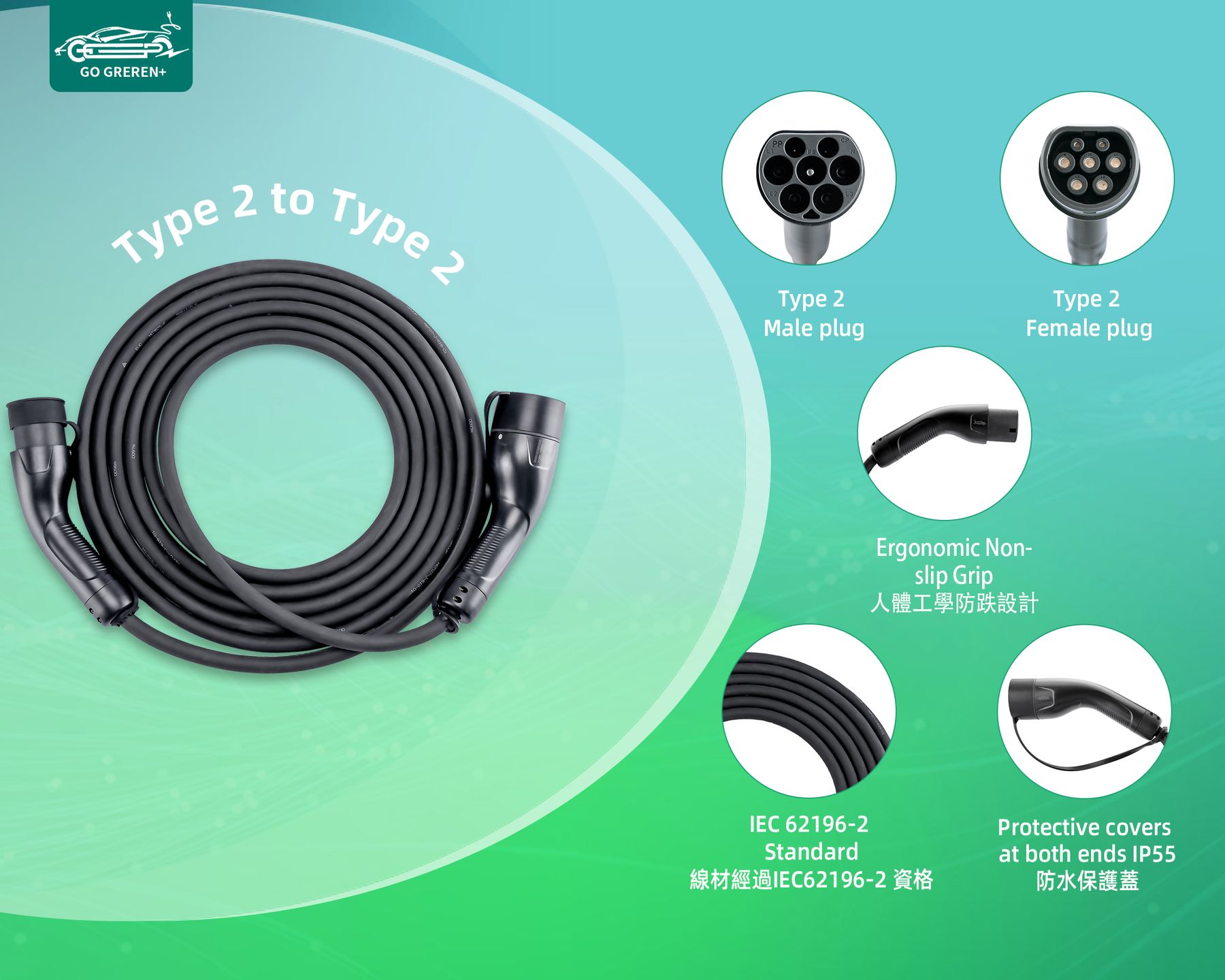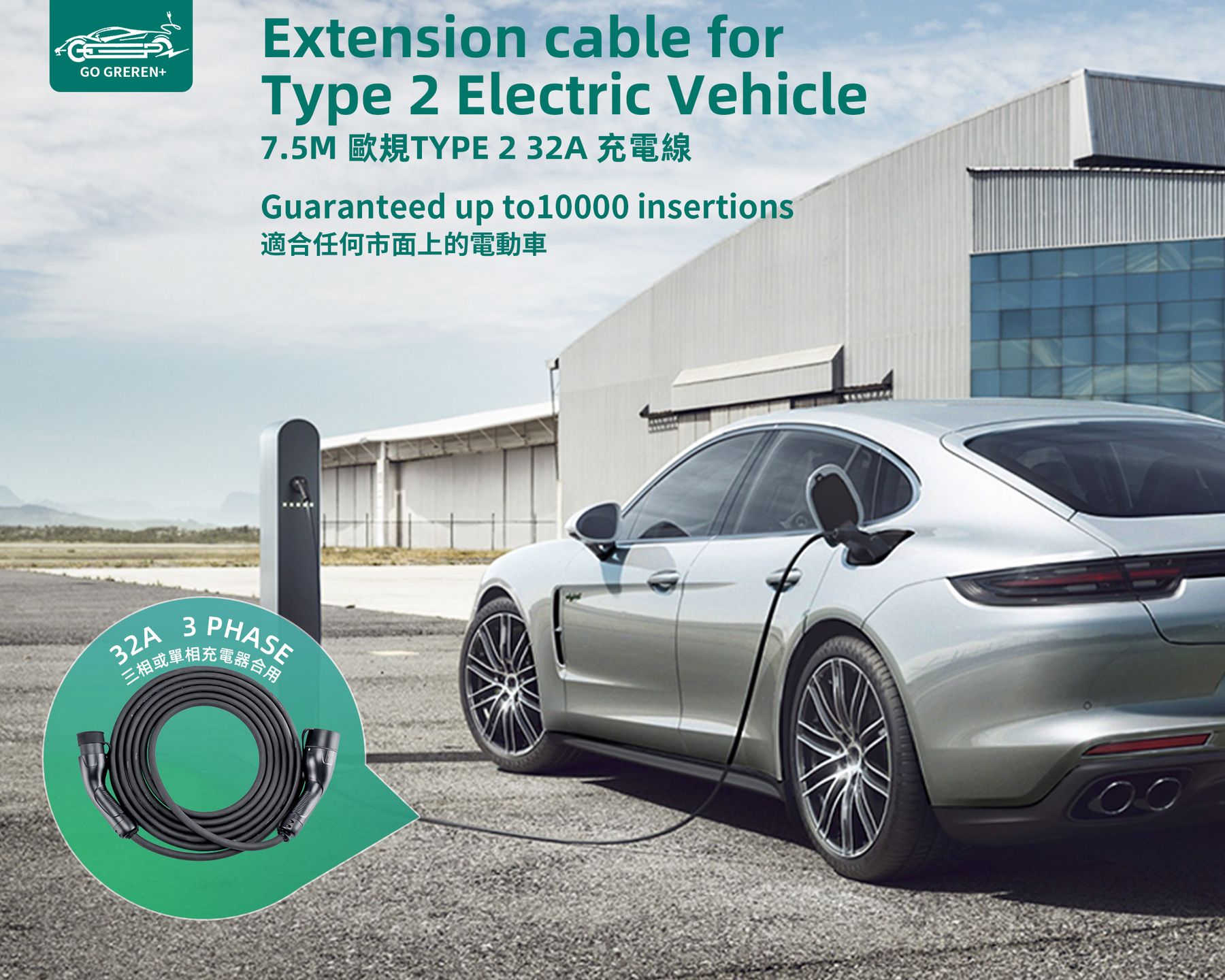 - Support upto 32A charging ,Compatible with 1 Phase or 3 Phase with 32A max charging station